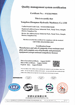 揚(yáng)州中茂液壓機(jī)械有限公司是一家專(zhuān)業(yè)研發(fā)和生產(chǎn)液壓成套設(shè)備和耐磨材料的公司,公司位于江蘇省揚(yáng)州市。公司現(xiàn)有各類(lèi)技術(shù)員工80余人,耐磨復(fù)合鋼板具有年產(chǎn)量80000平方米的生產(chǎn)能力,焊接材料具有年產(chǎn)量5000噸的生產(chǎn)能力。